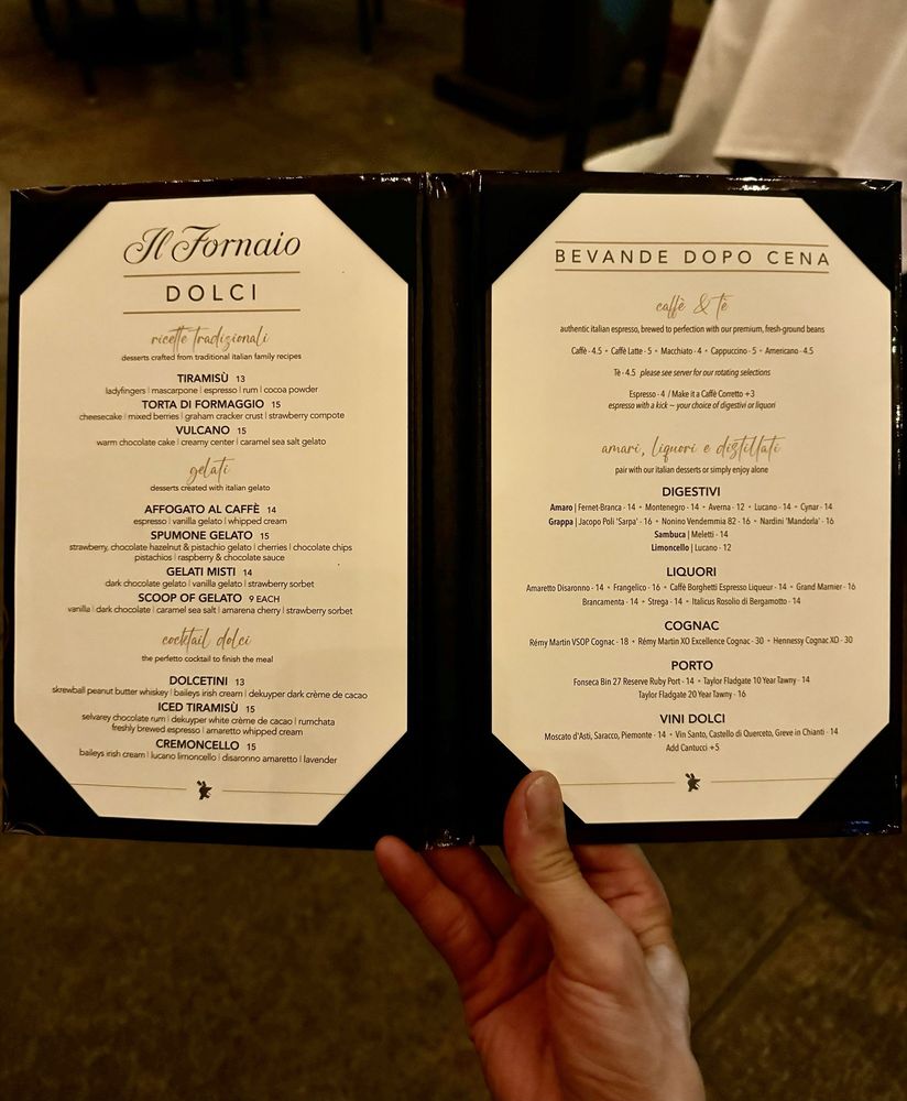 “ Ate here for a company event of 15 people and it was great! The ambiance was very cozy and we got a private room to ourselves. The appetizers were very flavorful and set a great tone for the meal - the dessert was just as impressive, offering a not-too-sweet finish that left me wanting more. The main courses were decent, but they didn't live up to the high expectations set by the starters and the dessert. BUT the drinks were delectable and had a fun holiday twist to them Overall, Il Fornaio is worth visiting for the ambiance and some hearty Italian food. ”